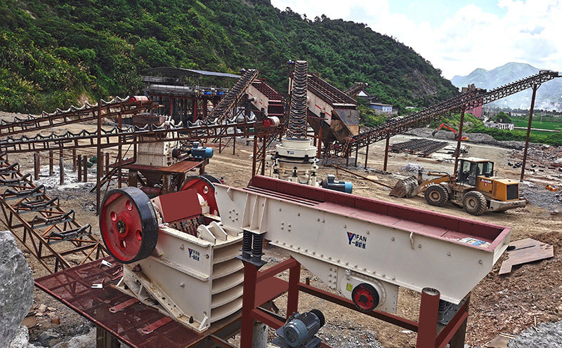 設(shè)備配置:顎式破碎機(jī)1臺、反擊式破碎機(jī)1臺、圓錐破碎機(jī)1臺、給料機(jī)1臺、振動篩2臺、輕物質(zhì)處理器1臺